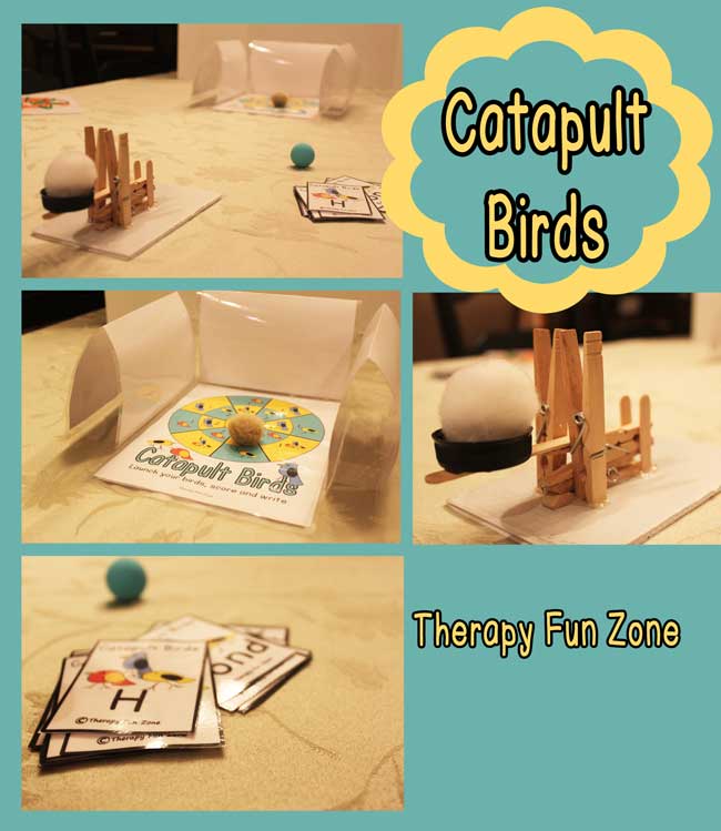 What a fun idea! This summer my grandsons figured out how to use the outdoor see-saw as a catapult. I love this idea using the pom poms since it can be used indoors and facilitate practice of some literary skills as well. Thanks for sharing it.